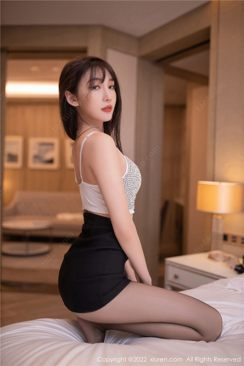 - 05-11 秀人网模特谭小灵黑色上衣搭配简约牛仔裤性感写真