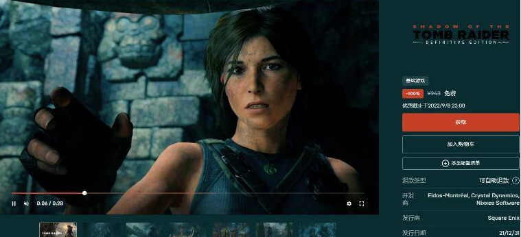 领取地址:https://store.epicgames.com/zh-CN/p/shadow-of-the-tomb-raider