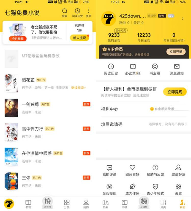 - 10-29 [安卓软件] 七猫小说v7.35去广告会员版