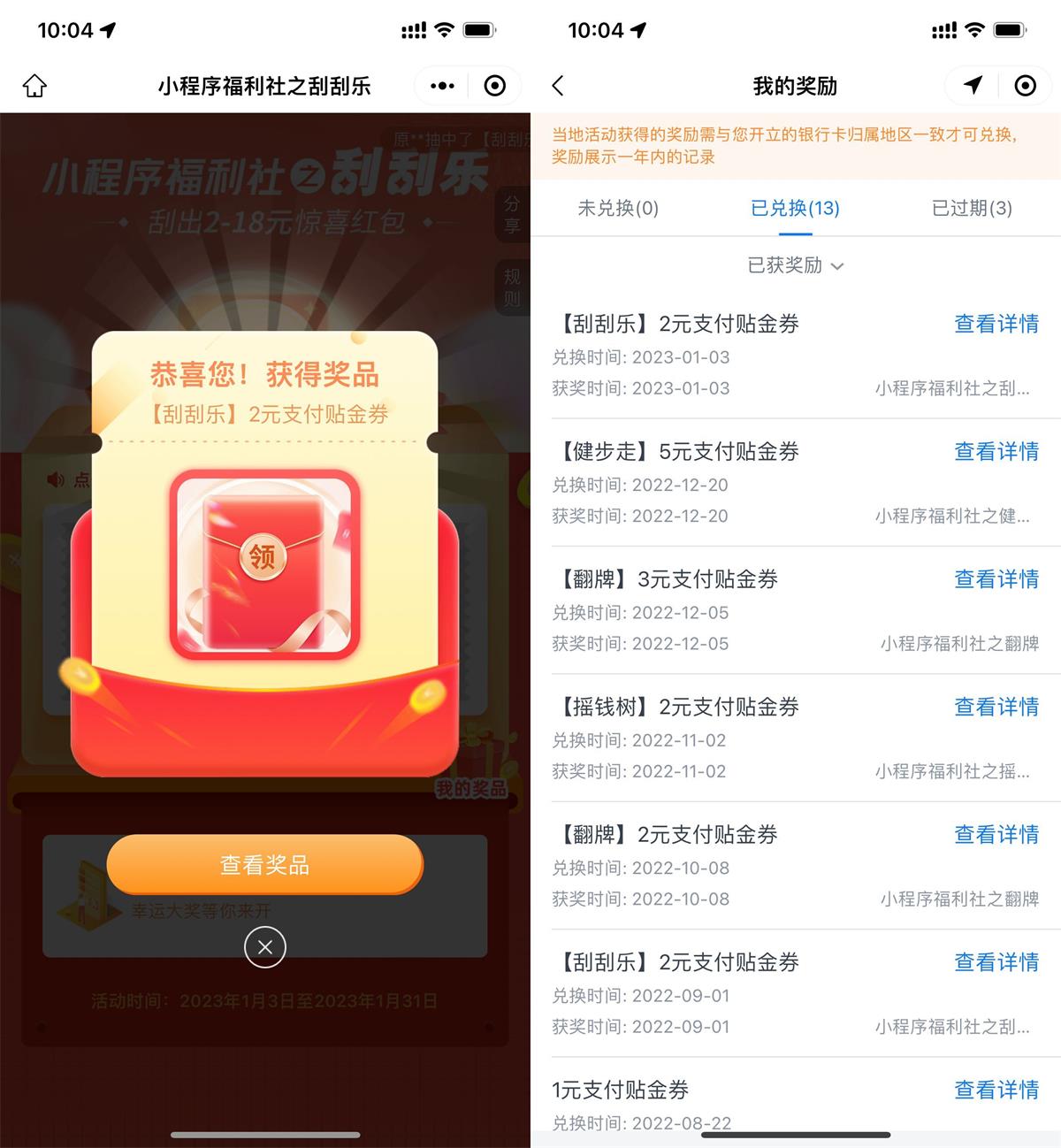 交行刮刮乐抽2~18元贴金券
