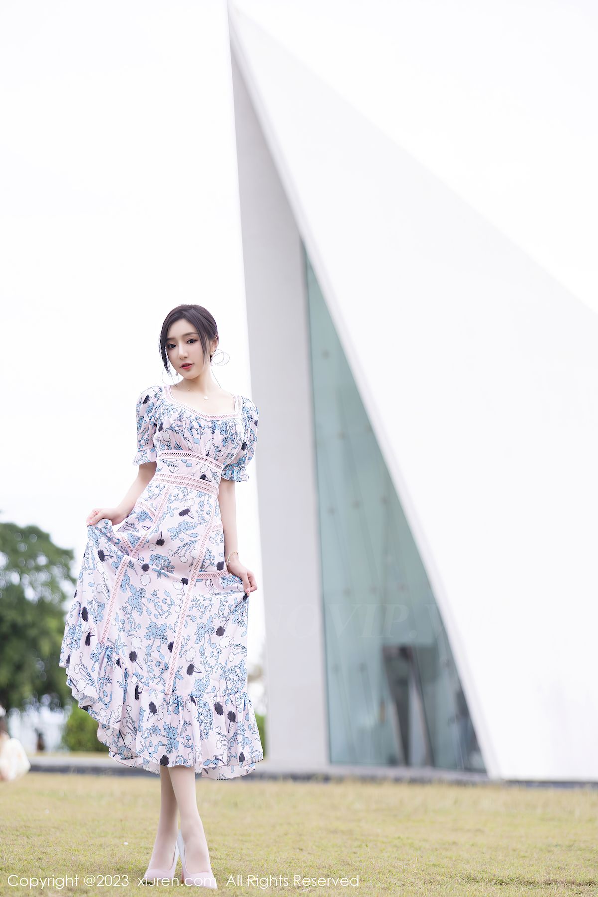 - 05-11 秀人网模特章芃芃吊带长裙搭配魅惑黑丝户外场景写真