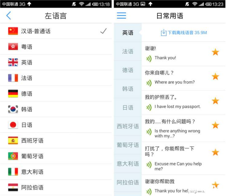我们还针对不同语种精选出常用语供参阅,并且提供了添加收藏功能,你可定义个性化的短语以备不时之需。
