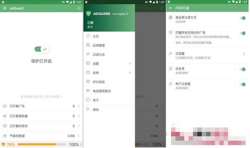 【修改说明】解锁高级会员【软件介绍】一款专为手机上网而生的广告拦截工具,能够拦截手机内所有浏览器和应用内的广告,效率更高,效果更好,一键过滤所有广告神器