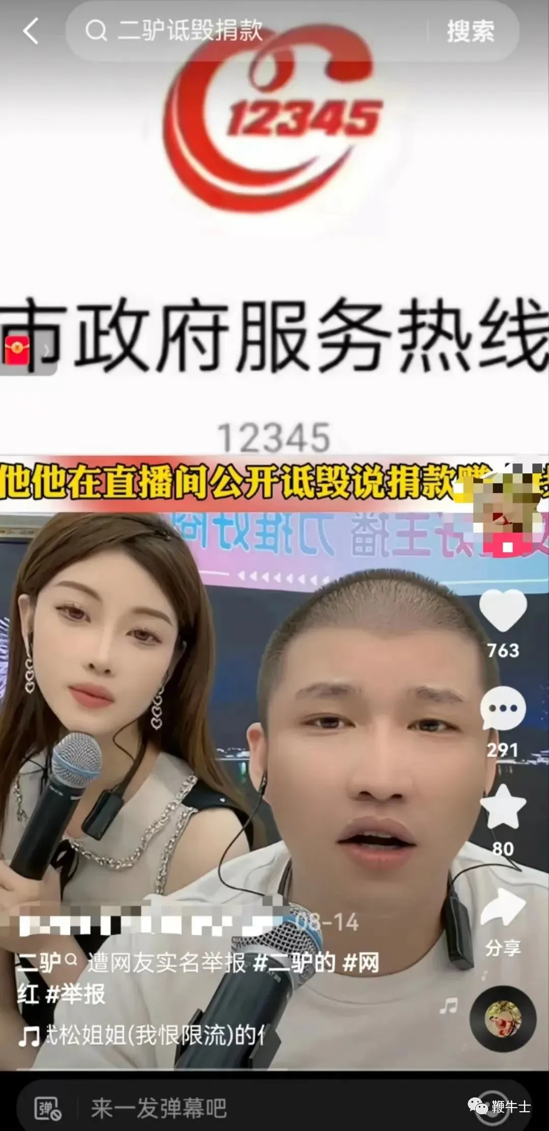 今年6月,二驴账号出现了暂无直播权限,疑似被封。前不久,账号「二驴的」因在直播间公开侮辱捐款,被网友实名向12345举报,并要求对其封禁。