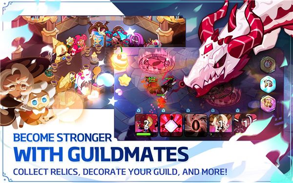 姜饼人王国国际服官方正版(Cookie Run Kingdom)是一款由 Devsisters 开发的动作角色扮演扭蛋游戏。在“Cookie Wars”等游戏大获成功之后,Devsisters Corporation 工作室为您带来全新的冒险和战斗,这些冒险和战斗发生在 Kingdom 世界最甜蜜的领域。在姜饼人王国国际服最新版本游戏中,您必须解锁不同的 Cookie,才能组建一支平衡良好、潜力无限的小队。不过,对于你的战士来说,这并不是一帆风顺的。在许多情况下,他们的路径会被等待的敌人挡住。在整个回合中,您将进入有趣的战斗,您需要点击不同的战士来释放有效的攻击和组合。但是,你要记住,每张人物卡只能在等待几秒钟的恢复后才能使用。尽管如此,Cookie Run Kingdom 并不仅仅是战斗。您还必须去饼干王国建造房屋和其他建筑物。这样,您的公民将有一个和谐相处的好地方,您将能够升级您的英雄。在您改善已经组成团队的角色条件的同时。Cookie Run Kingdom 提供有趣的游戏玩法和丰富的故事情节,让您更仔细地了解这个故事的来龙去脉。在整个游戏中,当您与最危险的对手作战并管理饼干王国的资源时,您将尝试征服大部分领土以击败邪恶。