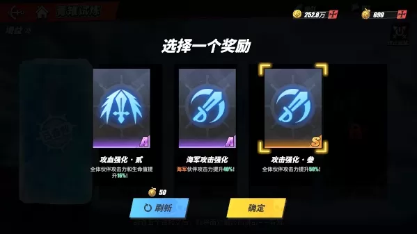 5、超必杀技最好流程破盾的时候使用,只有在超必杀技进入冷却的时候才选择普通奥义。其次大家在过关之后选择属性时,最好可以选择增加输出的,输出高了自然破盾也就快了,这样效率会更高一些。尽量选择S品质的加强奖励,属性提升会更好一些,后期难度可以考虑刷新一下。