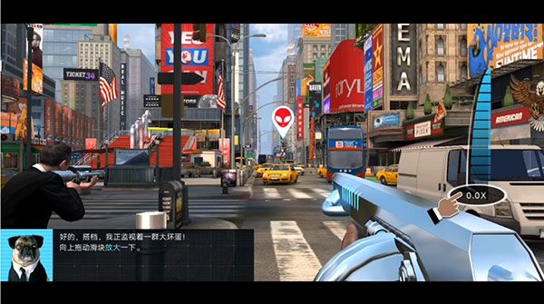 2、我们出现在繁华的纽约街道,这里出现了一个外星人