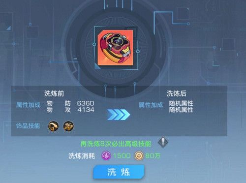 饰品洗炼:对选择饰品进行洗炼,洗炼后获得随机的属性和饰品技能