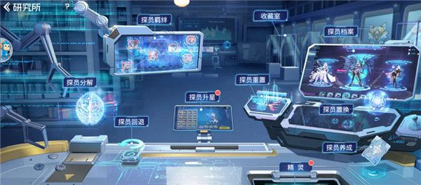 研究所的功能比较多,有羁绊、收藏室、升星、重置等功能