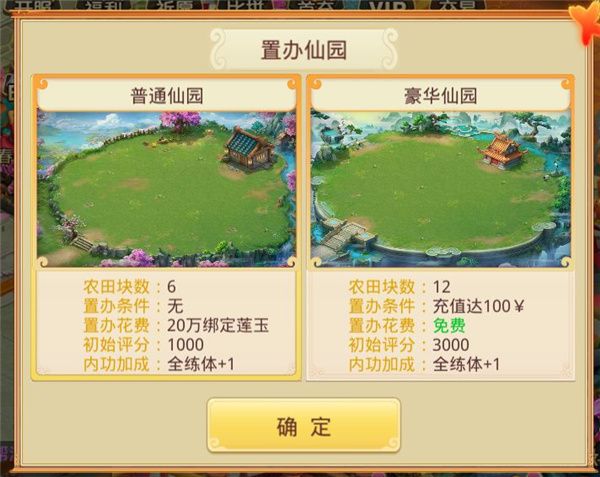点击进入仙园即可进入自己的仙园,玩家可以在此建设自己的仙园。