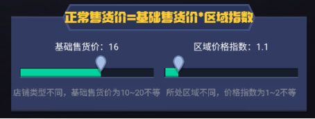 我们先来看看货价吧,店铺基础货价会有10~20的差异,这个基础货价是不会变的,跟店铺类型绑定,一般建造价格高的店铺货价就高。