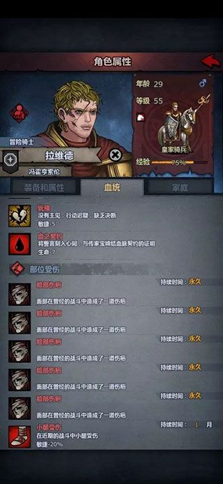 8、随着游戏内时间的流逝,角色会变老,占领的周边领地会被收回,角色的伤痕也可以恢复,玩家还可以用角色和一些大的势力进行联姻,生出的孩子会继承角色的血统,算是一个新的培养方式,而这些孩子会渐渐长大,逐渐替换掉前期主力。