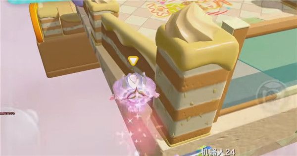 1、同样地在比赛开始前跳到护栏,然后等靠近草莓蛋糕柱时趁机跳到边缘
