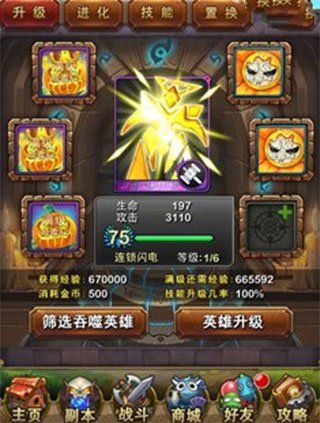 金币用来升级英雄和战斗力的复活。金币可以通过刷副本、出售英雄卡、系统统一发、登录奖励等来获取。