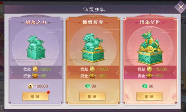 9、仙盟贡献可通过仙盟玩法、仙盟捐献获得。