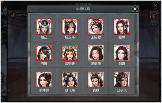 2、红颜拥有相貌、才艺、品德三个属性,每个属性升级消耗的道具均不一样;