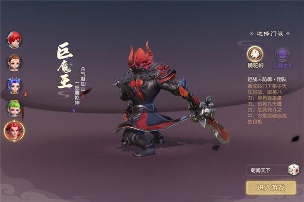 2、狮驼岭可选的人物只有巨魔王,就是一个类似坦克的职业,在团战中为大家做贡献的,属于平民玩家开荒的首选。