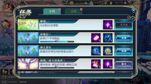 弱小的我们,首先肯定选择免费资源进行快速升级,那么主线与每日活跃任务当然是首选啦~~
