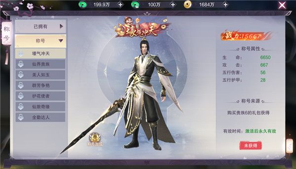 6、称号:玩家可以查看和编辑获得的称号,进行穿戴。