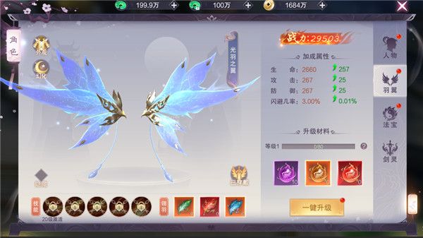 2、可通过竞技场,仙盟答题及运营活动,成就等获得精华丹,可以增加羽翼升级经验,经验满后羽翼升级