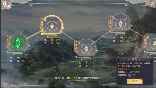 7、境界:玩家可以查看自己的修真境界,达到战力要求和以及收集足够的所需道具可以提升修真境界。道具主要通过世界魔王,专属魔王获得。