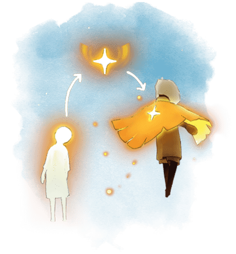 翼之光会以光之子(Children of the Light,简称小金人) 出现,旅人可在所有地图寻找光之子。光之子会化为翼之光「保存」在旅人体内,同时仪表进度条会更新(浅蓝色为已获得的翼之光)。