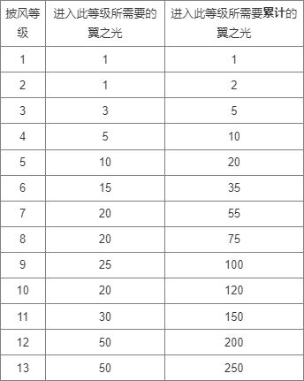 每获得一个翼之光,系统就会提示还需要多少数量的翼之光进行升级。