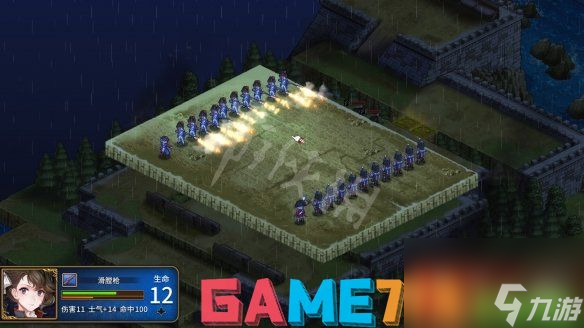 进入第八回合,场面上会下雨浇灭篝火,需要注意需要依靠篝火回复的队伍一定要驻守在篝火附近。且敌方指挥官会开始行动,指挥官会使用范围炮击令目标四周围的我方军队无法行动,切忌所有单位站在一起。我方 CPU 增援(炮兵)会攻击楼上的外层炮兵,因此可无视。