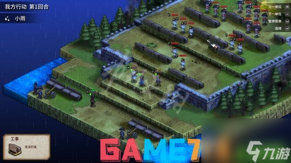 南边草地的战场虽然有一名炮兵,但我方可以利用草地加成,因此不会有太大的威胁,快速使用移动力高的兵种靠近并消灭他即可,剩余的轻步兵皮也比较薄,可利用轻骑兵快速歼灭。