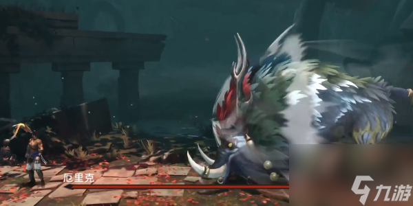 第三步:在战斗开始前厄里克会先向后退再进行冲撞,我们只需要往旁边侧身就可以躲过,在战斗中需要时刻注意自己的位置,如果躲避不了可以使用武器进行格挡。