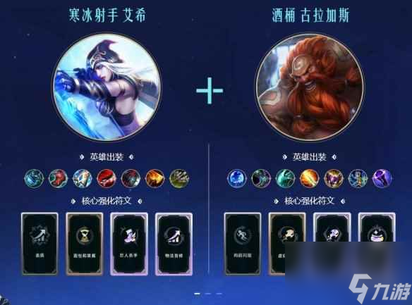 这个组合的强势之处在于这两人打小规模团非常厉害,各自都有位移、回复、爆发以及控制,且输出类型一个是AP、一个是AD,两人都是能快速打完套小技能去吃果子减CD再打一轮的英雄。Es0
