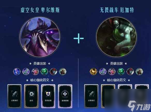 新装备花晓之剑拥有超强的普攻回复效果,搭配上两个普攻频率特别高的英雄拥有很强的坦度和击杀能力,厄加特的W技能和卑尔维斯的E技能都可以频繁触发装备特效,同时两个人的面板属性较高战斗力也是十分强劲。Es0