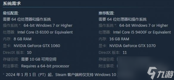 《死亡裂痕》游戏对CPU的要求不高,但是对显卡方面有着较高的要求,最低配置就需要达到1060的水平。