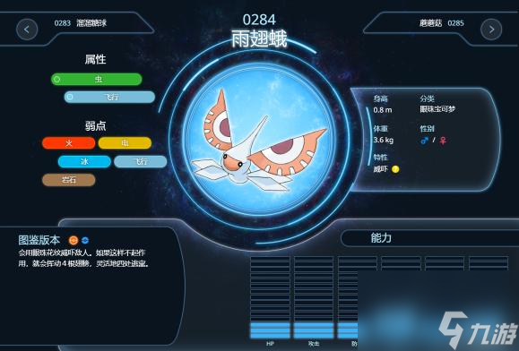 雨翅蛾是有着威吓特性的虫系,那么一手威吓至少起到了干扰的作用,但雨翅蛾的短板也相对明显,虫飞带来的多弱点加上本身耐久也不算太好,速度80也不算快,于是雨翅蛾在不容易找到先手机会的情况下也很难站场,这是雨翅蛾存在的一大问题,雨翅蛾的基础特攻仅有100,真要起到做输出的作用的话很大概率需要依赖到蝶舞,但做蝶舞强化却缺少了如巴大蝶那样用催眠粉给自己创造蝶舞空间的技能,这些都限制到了雨翅蛾对战中的灵活性。