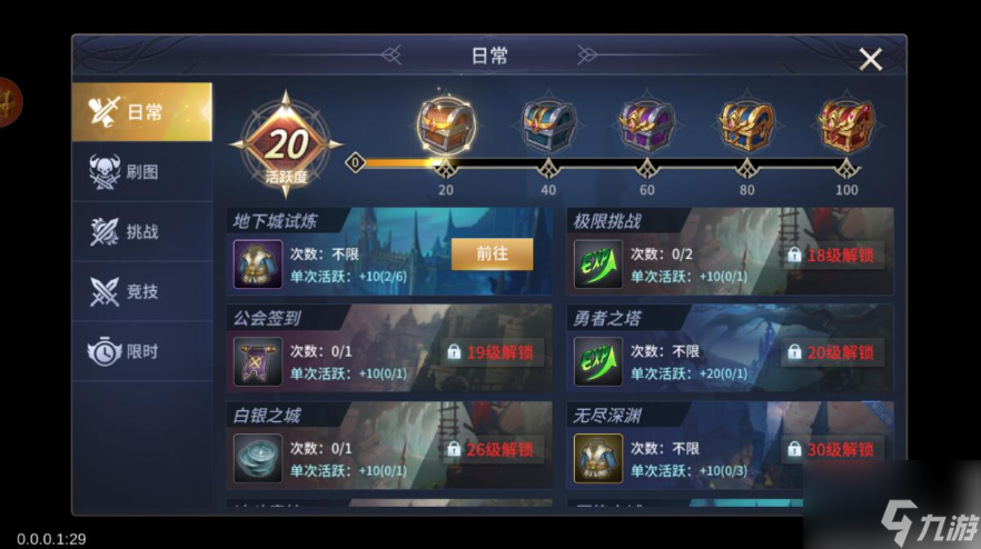7、玩家能够经过日常应战、勇者之塔等副本快速晋级