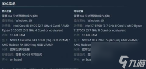 显卡: NVIDIA GeForce GTX 1060 (req. 6GB VRAM) / AMD Radeon RX 580 (req. 6GB VRAM)