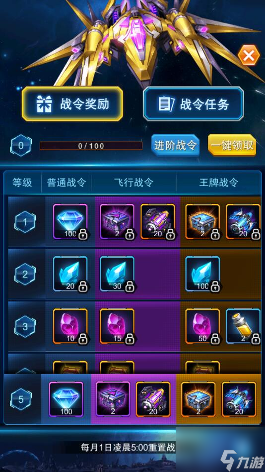 5、点击游戏界面的“战令”图标,进入后如下图,完成战令任务后可以获得各种奖励