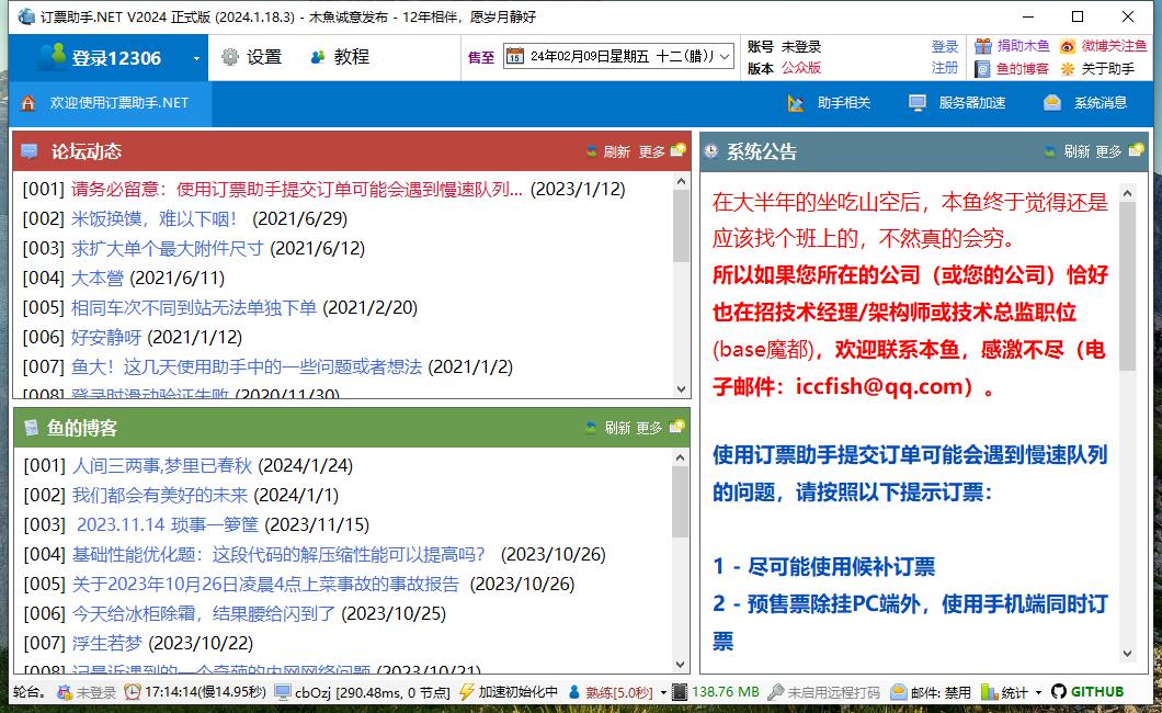 [精品软件] 订票助手.NET_v2024.1.18.3/火车抢票软件