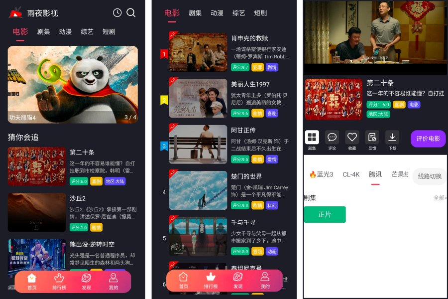雨夜影视是一款非常奈斯的影视播放神器,拥有海量电视电影、综艺动漫和热门短剧,各种类型和题材的作品应有尽有,用户可以根据自己的喜好和兴趣选择观看。