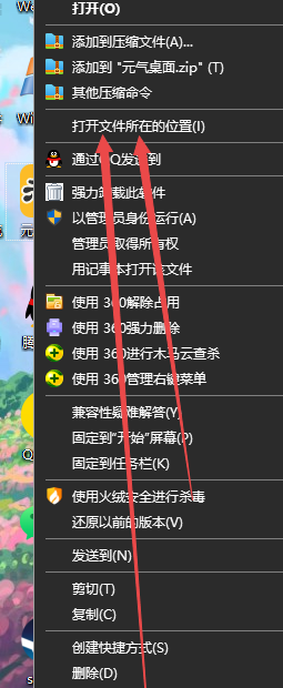 把劫持补丁dll 放到 这个程序的跟目录 , 不知道目录在哪的小伙伴 找到桌面【元气桌面】图标,右键-打开文件所在位置 然后把补丁拖到打开的这个目录即可