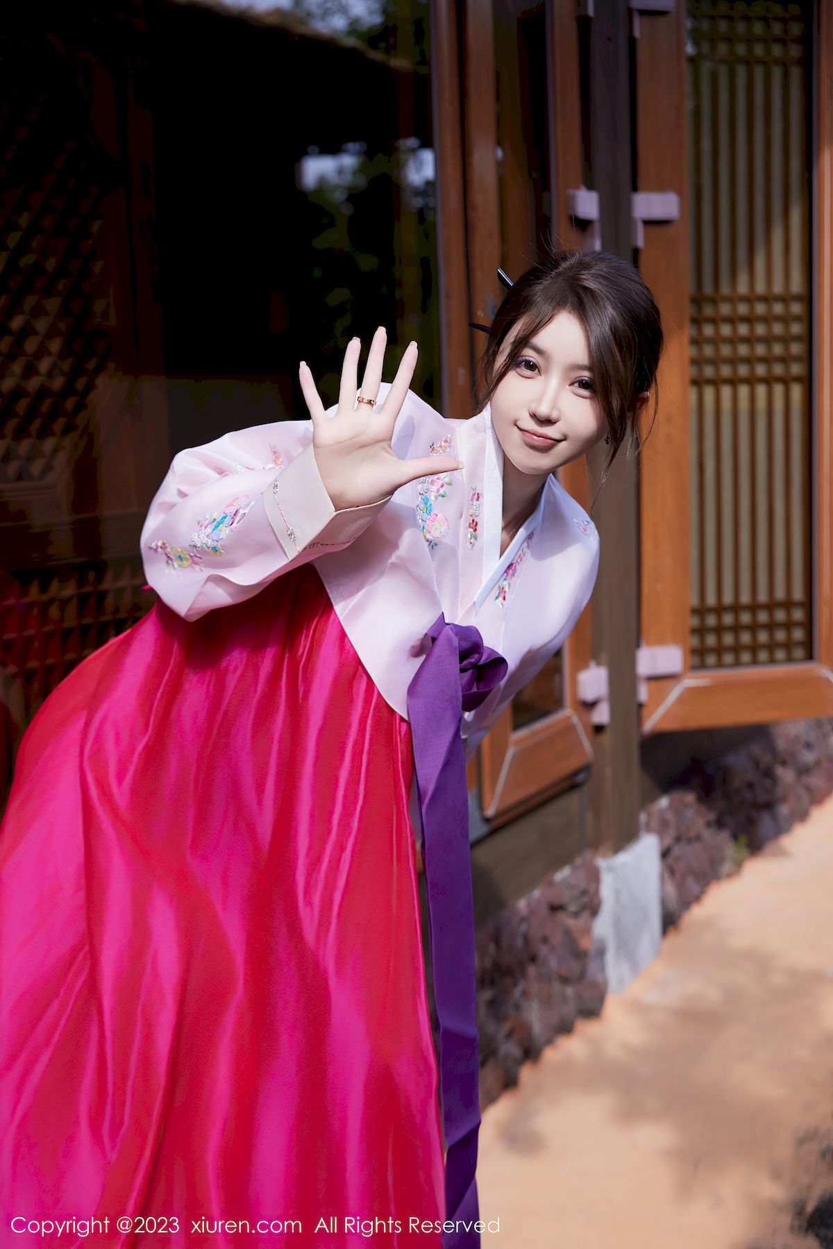 秀人网美女模特tina_甜仔红色大长今服饰济州岛旅拍